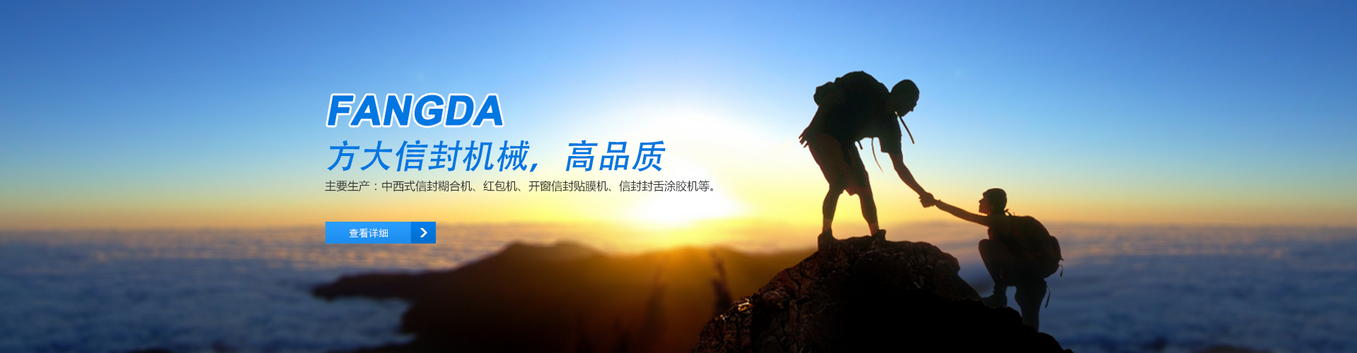 瑞安方大信封機械有限公司,是專業(yè)生產(chǎn)信封機糊合設(shè)備系列產(chǎn)品的企業(yè),主要產(chǎn)品有:中西式信封糊合機、紅包機、開窗信封貼膜機、信封封舌涂膠機等。實力來自規(guī)模,品質(zhì)源自專業(yè)。我廠擁有專業(yè)老練的工程設(shè)計人員,經(jīng)驗豐富的生產(chǎn)安裝人員,嚴謹認真的質(zhì)量檢驗人員,從而保證了所生產(chǎn)機械的優(yōu)良品質(zhì)。此外,我廠也將從技術(shù)上、性能上不斷改進提高,以更好的滿足客戶的需求。“客戶至上,服務為本”是我廠長期一貫的服務理念,從安裝、測試、保養(yǎng)、維修等售后服務,我們會給予客戶充足的信息資訊與技術(shù)支持,因此在業(yè)界獲得良好的口碑及信譽,您的滿意是我們的榮耀!歡迎您來電查詢、來人參觀,我們一定能給你滿意的答復!秉承“顧客至上,銳意進取”的經(jīng)營理念,堅持“客戶為先”的原則為廣大客戶提供溫馨的服務。歡迎惠顧!